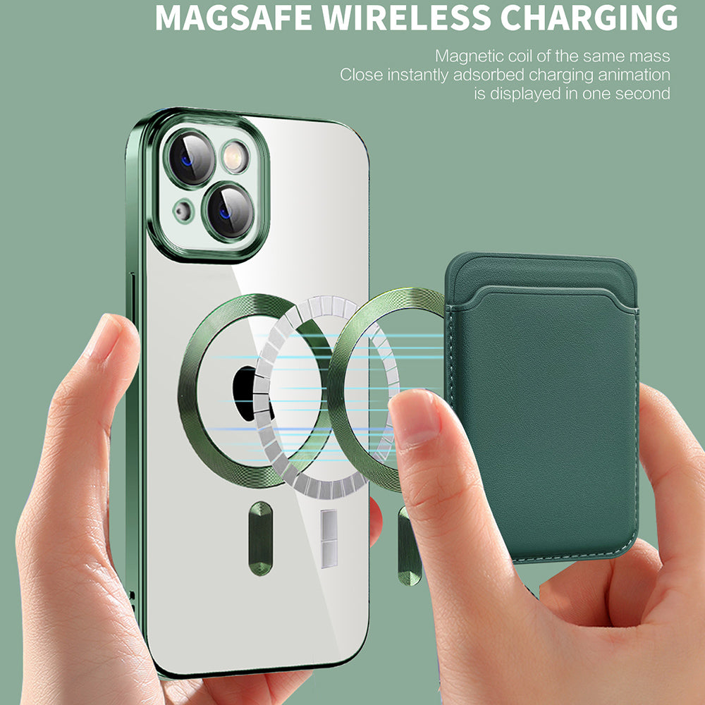 - V kombinaci s vynikajícím galvanickým zpracováním a zadní stranou má kruhový design s texturou CD, který zobrazuje logo vašeho telefonu. Vestavěné magnety, kompatibilní s nabíjením MagSafe