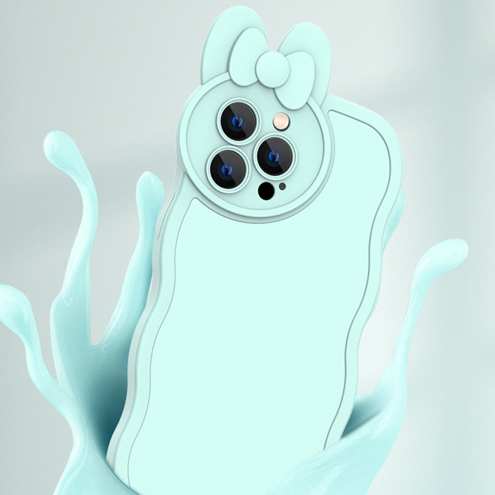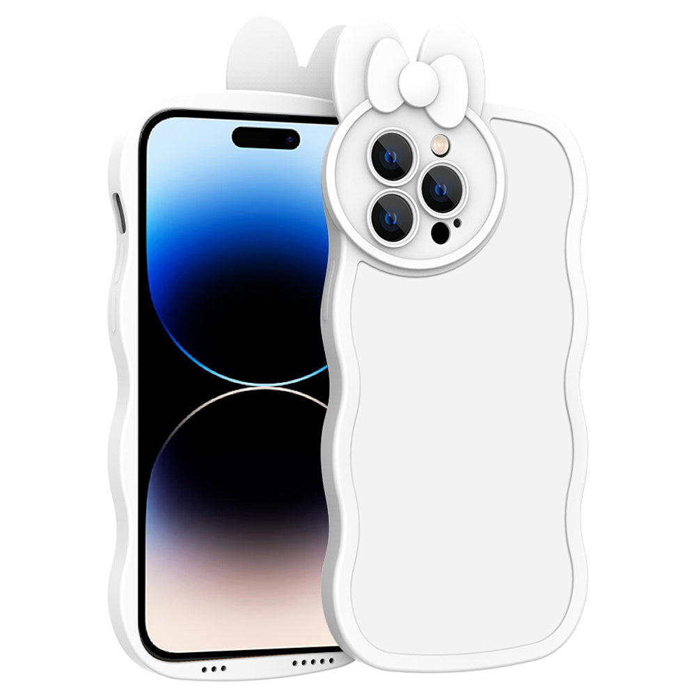 Pro iPhone 14 Pro tekuté silikonové pouzdro na telefon Roztomilý králičí hladký ochranný kryt s ochranou objektivu