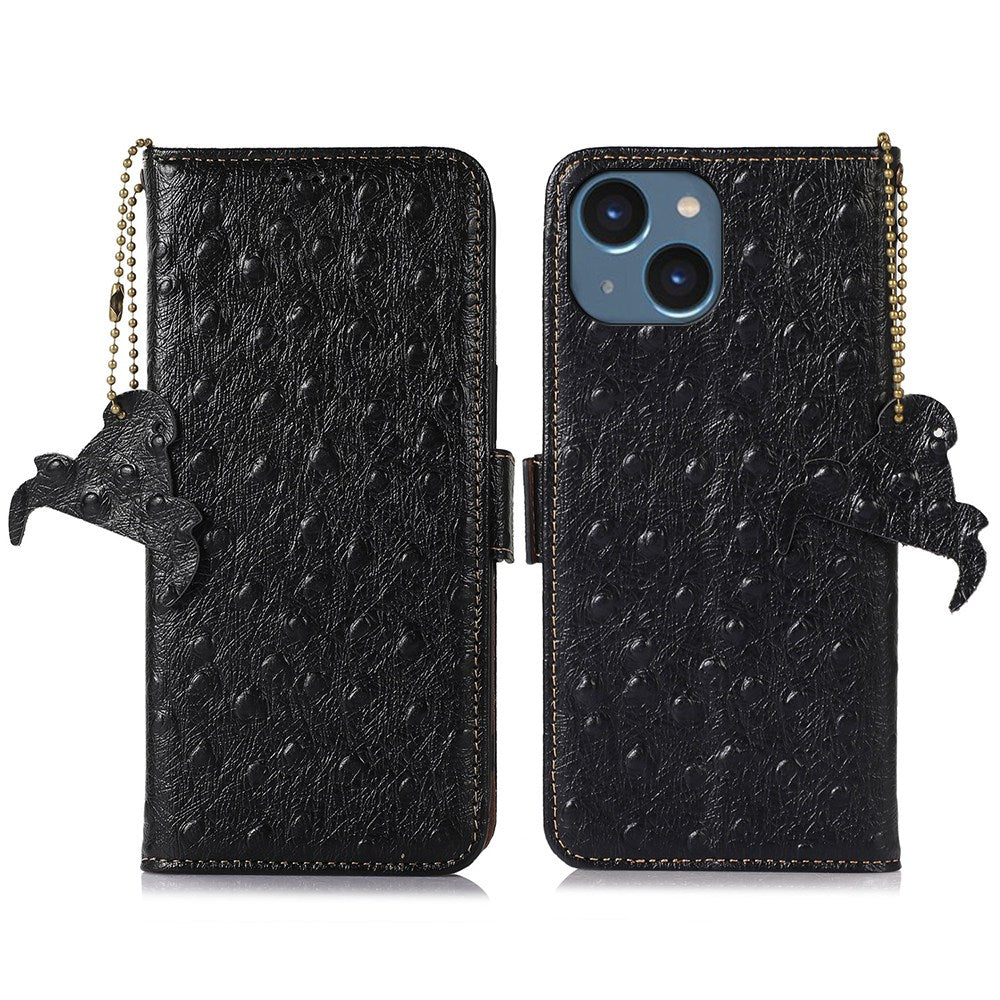 Pro iPhone 15 Plus Blokování RFID proti poškrábání Pouzdro na telefon z pravé hovězí kůže Kryt na telefon