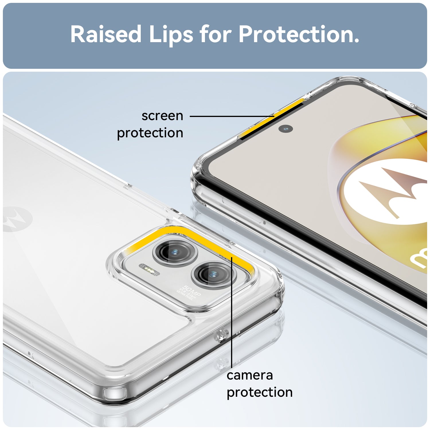 - Raised lip at back higher than the phone camera offers better protection