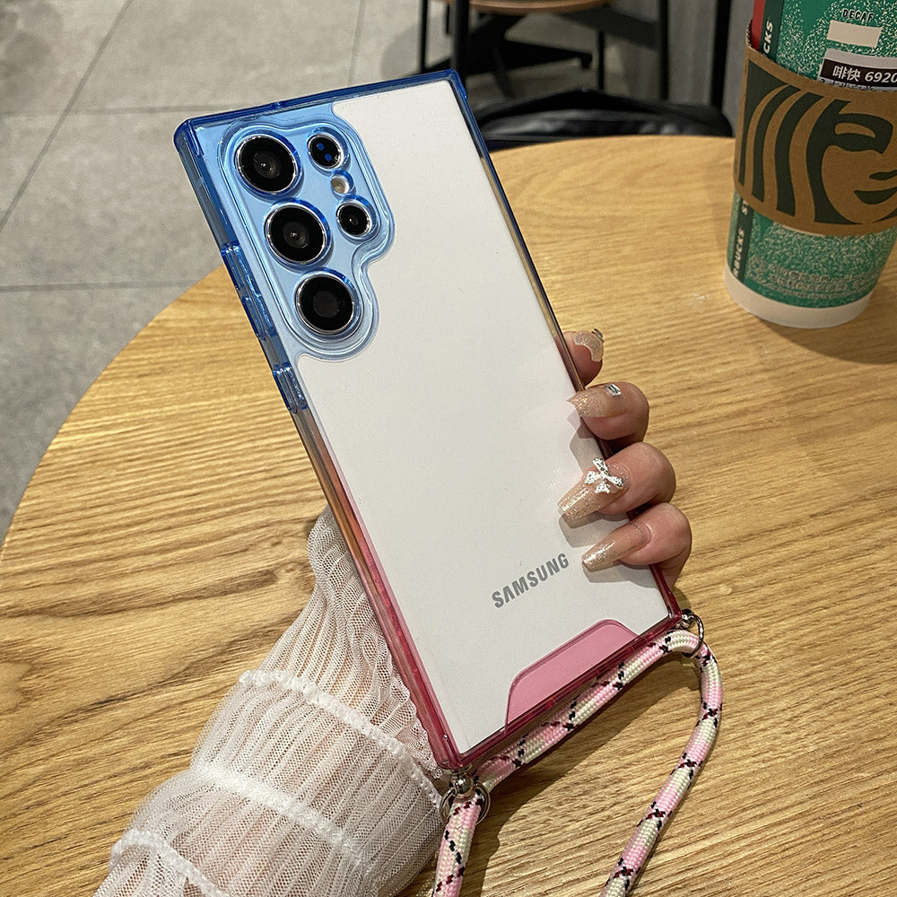 Pro Samsung Galaxy S22 Ultra 5G průhledné pouzdro na telefon s přechodovým rámečkem TPU kryt na telefon se šňůrkou
