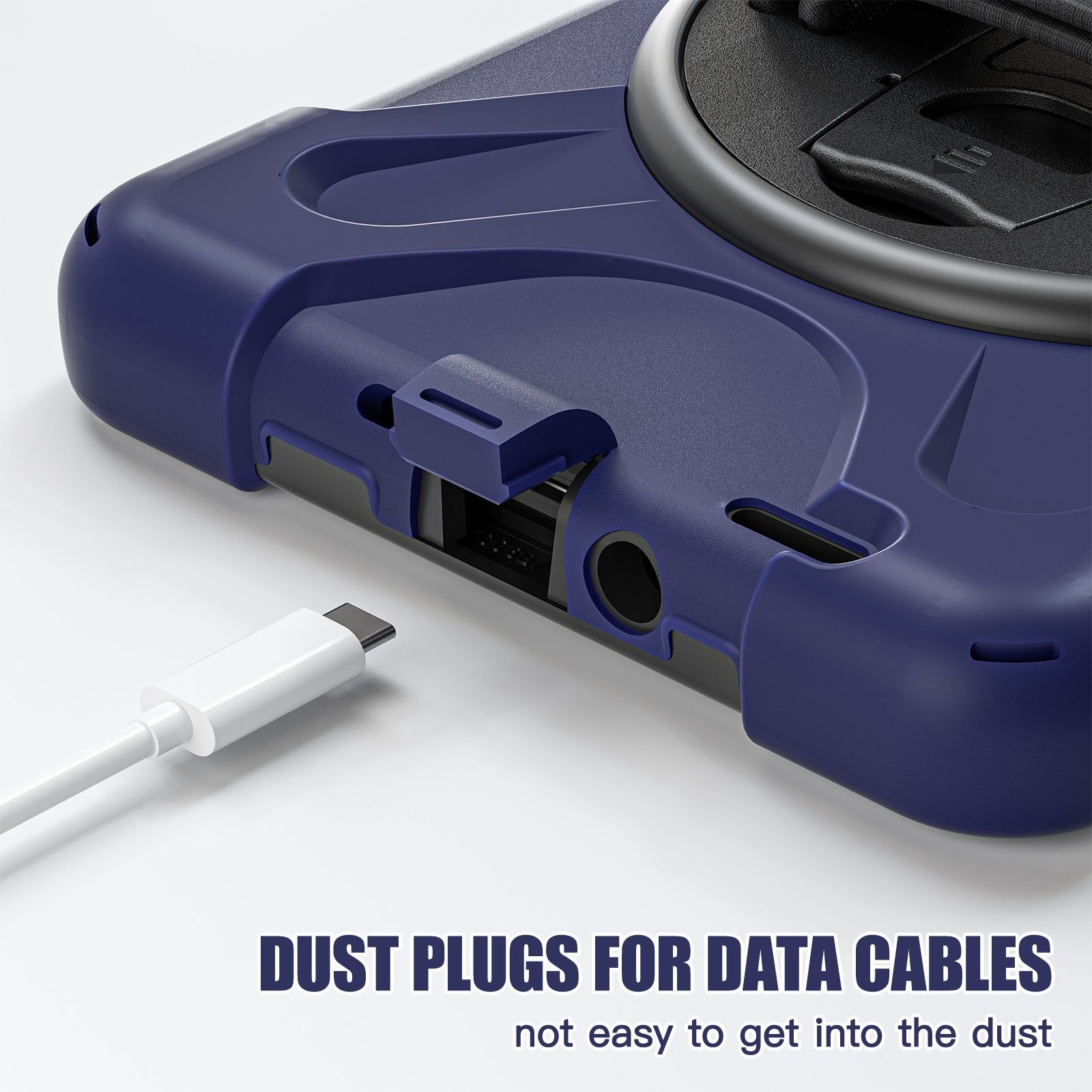 Integrated 360-degree rotary kickstand with a magic tape hand band frees your hands for landscape or portrait viewing