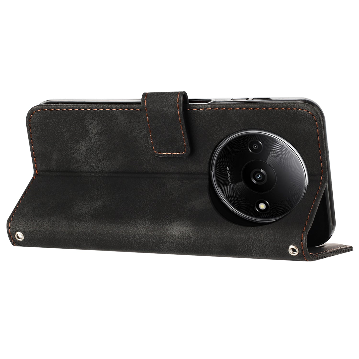 For Xiaomi Redmi A3 / Poco C61 4G Leather Case Triangle Imprinted Anti-Dorp Phone Cover with Stand
