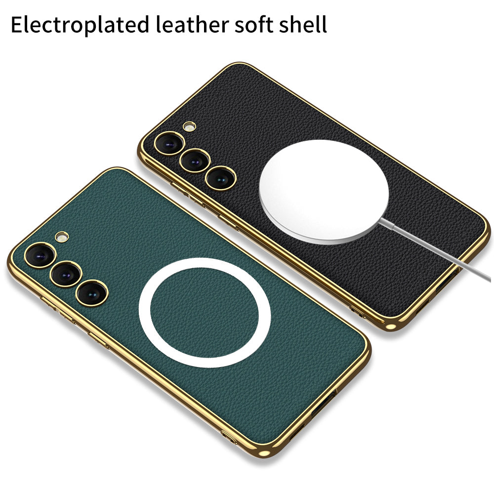 GKK pro Samsung Galaxy S23 Kompatibilní s galvanickým pokovováním MagSafe TPU rám PU kožené pouzdro na PC