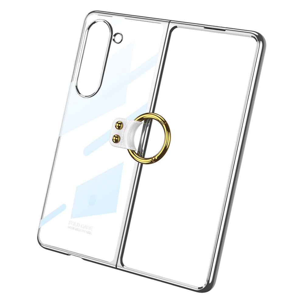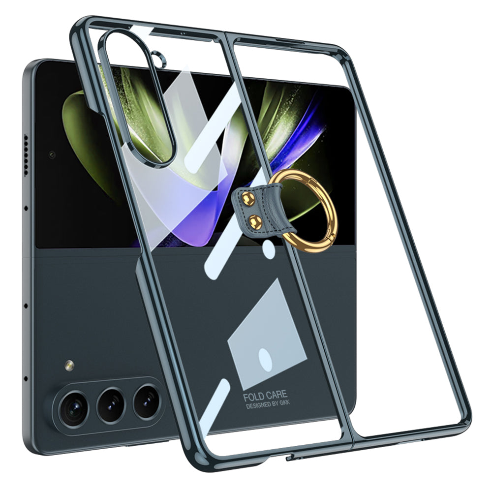 GKK pro Samsung Galaxy Z Fold5 5G Hard PC Průhledné pouzdro Držák na kroužek Stojan na galvanické pokovování Kryt telefonu