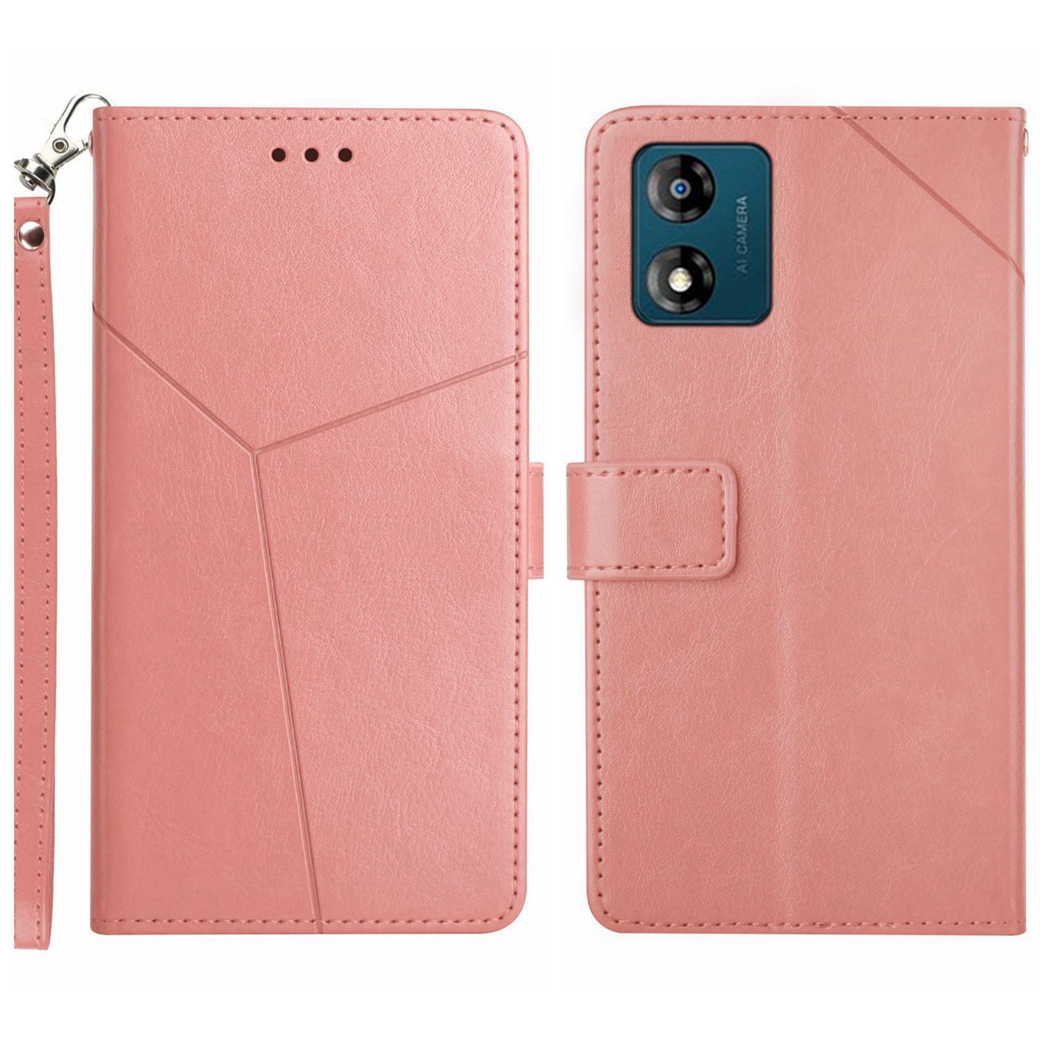 HT01 For Motorola Moto E13 4G Wallet Phone Cover Foldable Phone Stand Imprinted Y-shaped Line PU Leather Flip Phone Case Shell with Strap