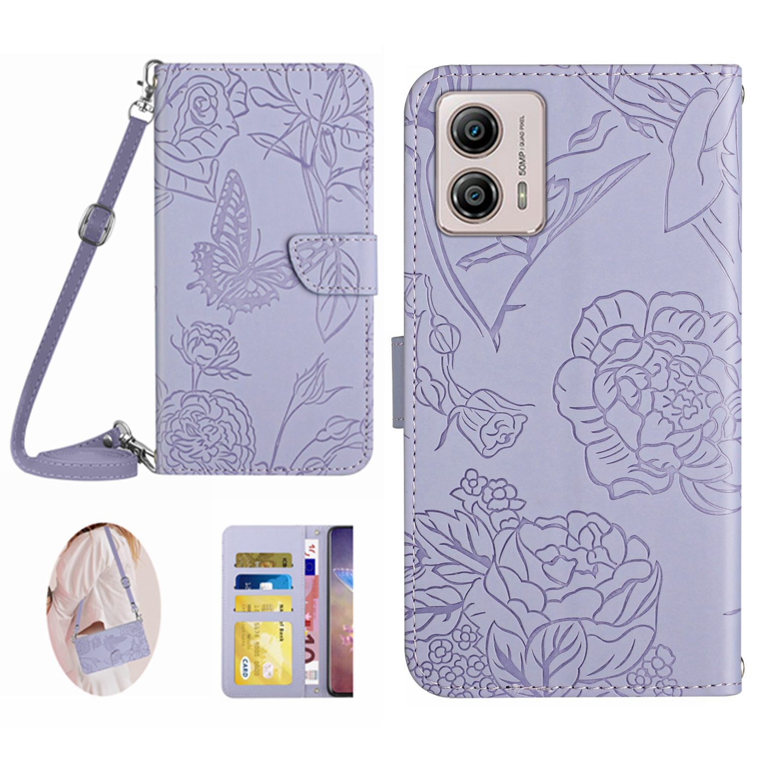 - HT03 Leather Case for Motorola Moto G53 5G Butterfly Flowers Imprinted Stand Wallet Cover with Shoulder Strap HT03 Leather Case for Motorola Moto G53 5G Butterfly Flowers Imprinted Stand Wallet Cover with Shoulder Strap