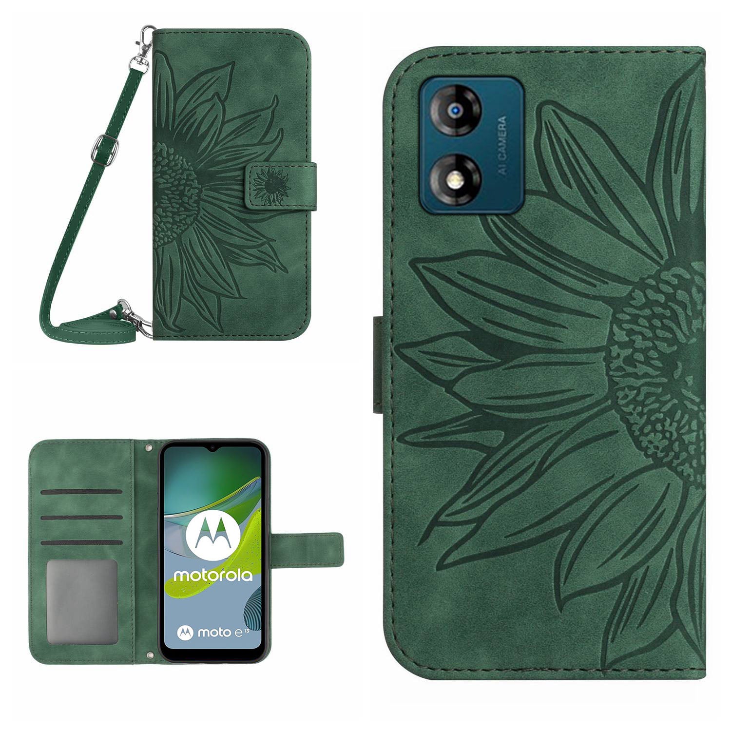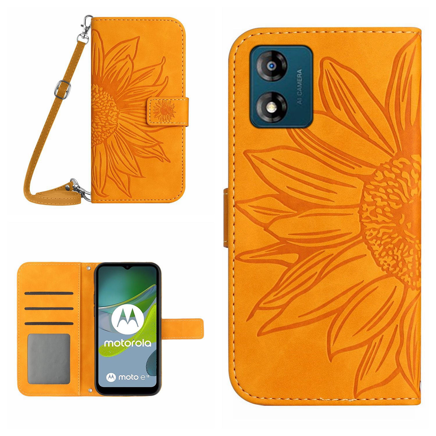 - HT04 Flip Cover for Motorola Moto E13 4G Sunflower Imprinted Stand Wallet PU Leather Phone Case with Shoulder Strap HT04 Flip Cover for Motorola Moto E13 4G Sunflower Imprinted Stand Wallet PU Leather Phone Case with Shoulder Strap