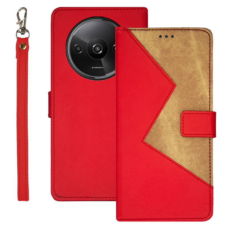IDEWEI For Xiaomi Redmi A3 / Poco C61 4G Case Splicing Color Card Slots Leather Stand Phone Cover