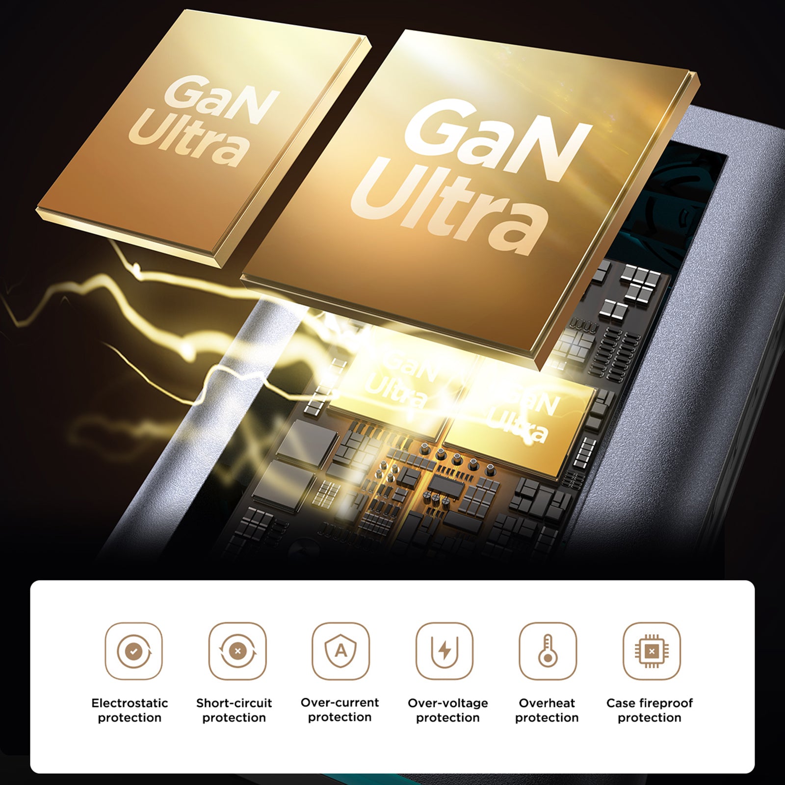- Using the latest type of highly integrated semiconductor material - gallium nitride chip, stable charging without heating