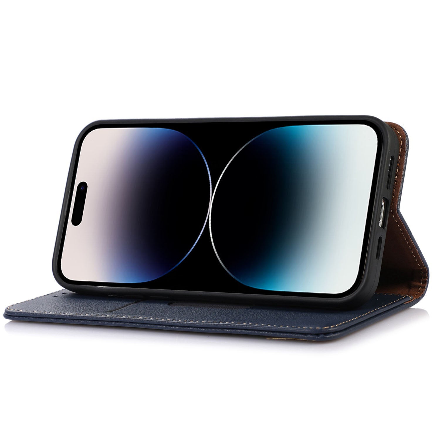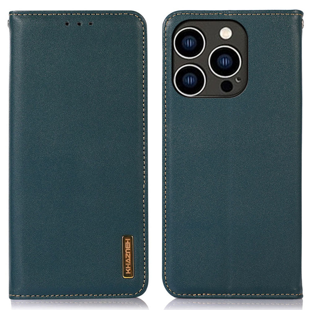 KHAZNEH Pro iPhone 15 Pro Max RFID blokovací pouzdro na telefon Originální stojánek na peněženku z hovězí kůže Flip Cover