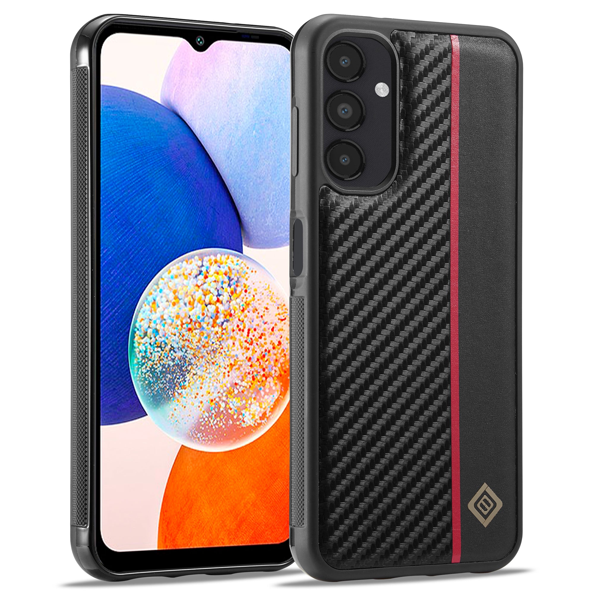 - LC.IMEEKE pouzdro s texturou z uhlíkových vláken pro Samsung Galaxy A14 4G / 5G, kryt telefonu potažený PU kůží TPU+EVA tlumením nárazů LC.IMEEKE pouzdro s texturou z uhlíkových vláken pro Samsung Galaxy A14 4G / 5G, kryt telefonu potažený PU kůží TPU+EVA tlumením nárazů