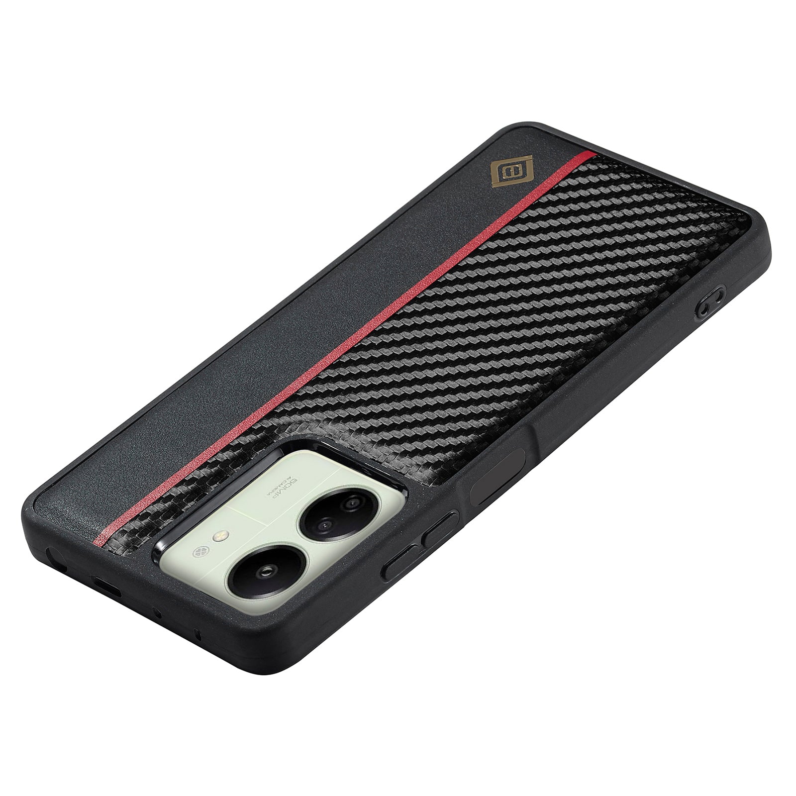- Carbon fiber texture and fine texture splicing PU leather coating, with red vertical stripe, stylish look