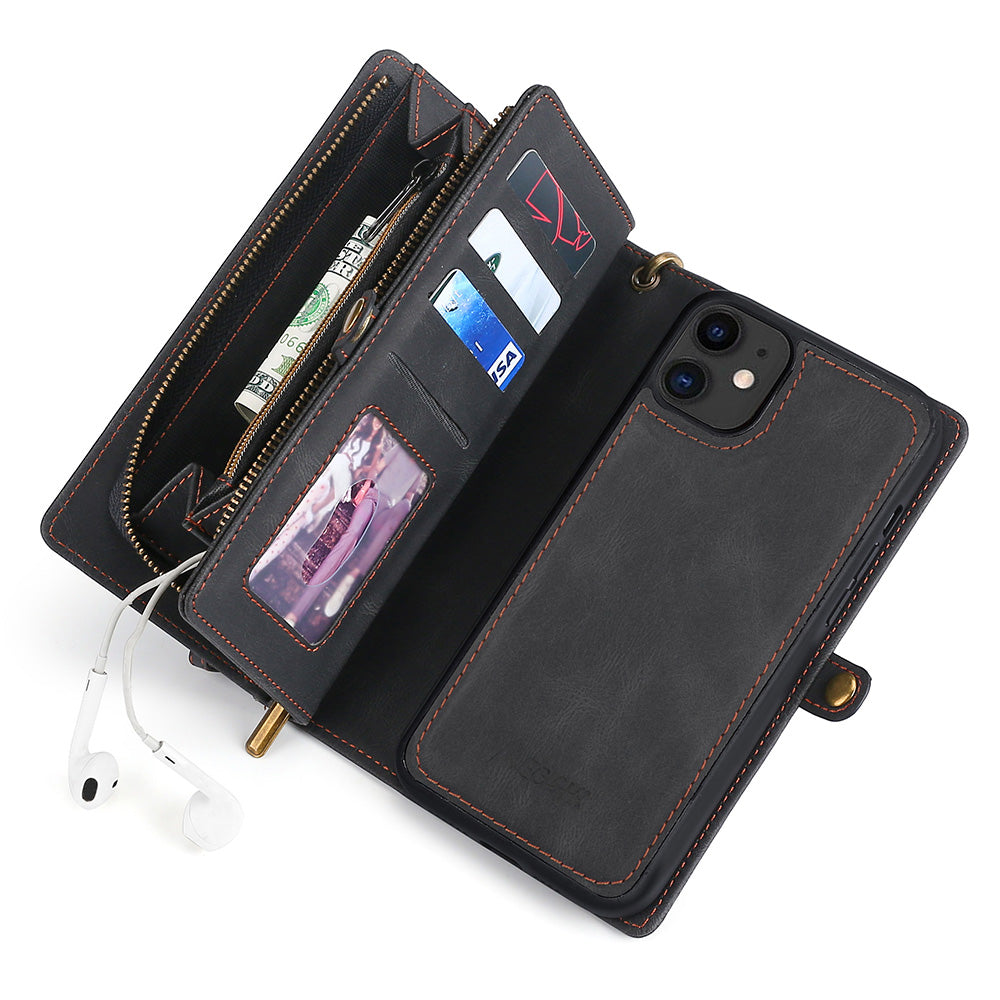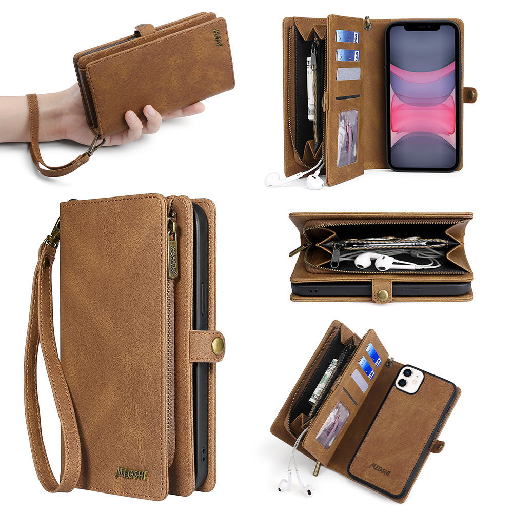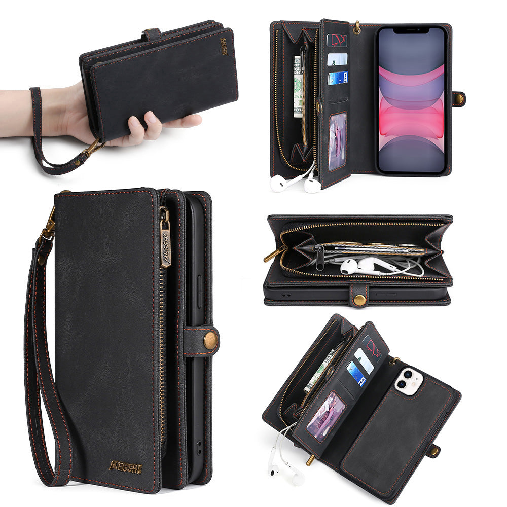 MEGSHI 017 Series pro iPhone 12 mini 5,4palcový magnetický přísavný odnímatelný kryt zip peněženka kožené pouzdro