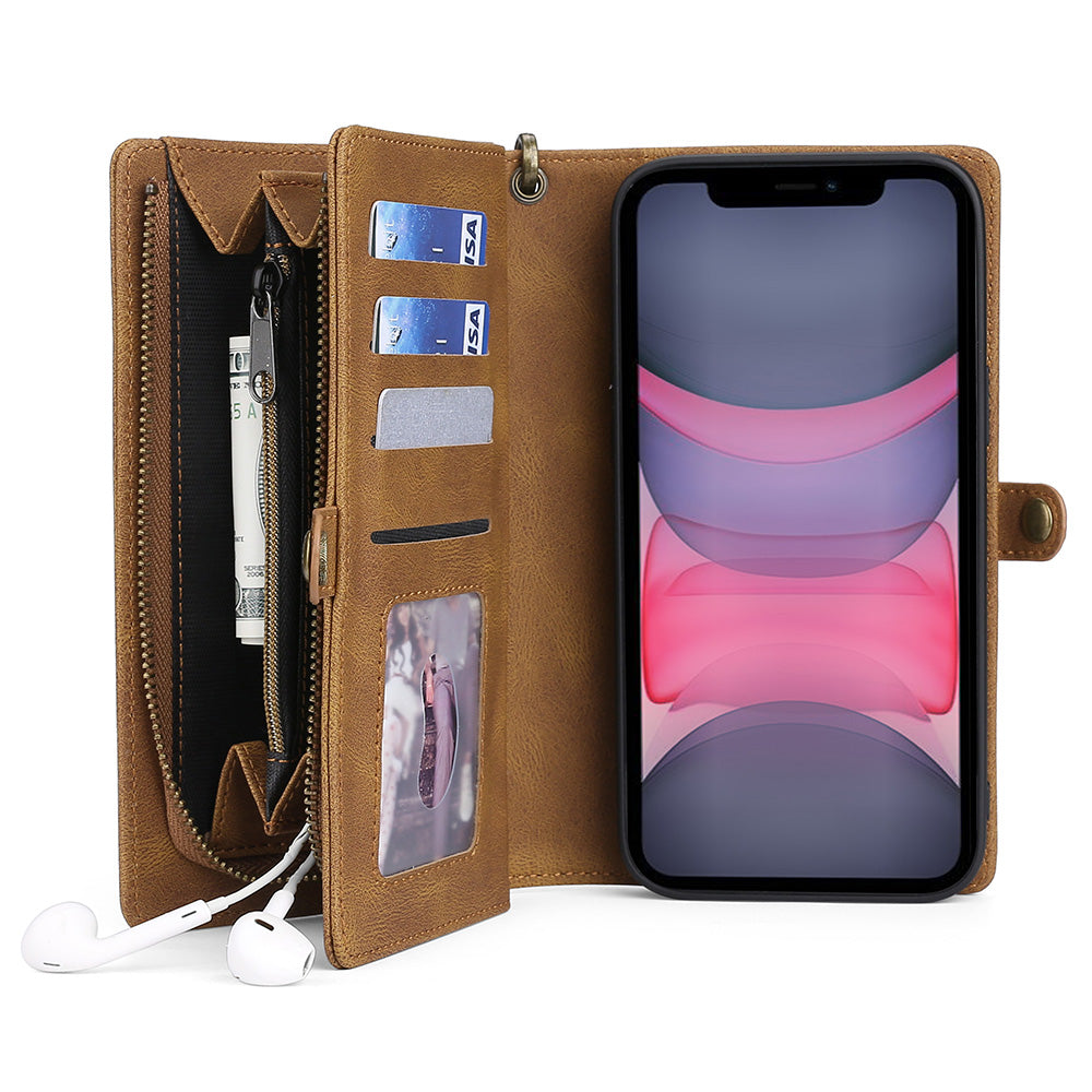 Dobře vybraná texturovaná PU kůže zvenčí dovnitř je hladká jako kůže a odolná proti znečištění. Vnitřní pouzdro, které je spojeno silným magnetismem, lze oddělit a používat samostatně. Praktický design, spojí vaši peněženku a pouzdro na telefon do jednoho praktického celku. Přihrádka na peníze uzavíratelná na zip, bezpečně u sebe noste nějaké peníze nebo sluchátka s telefonem.