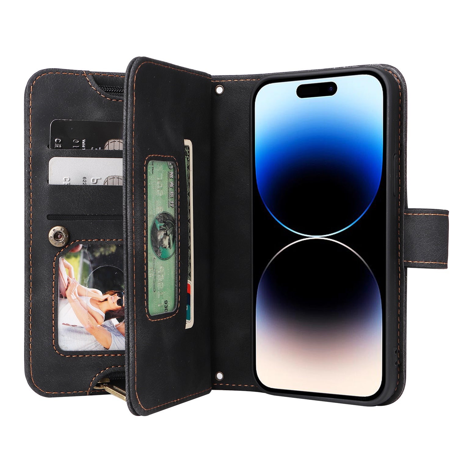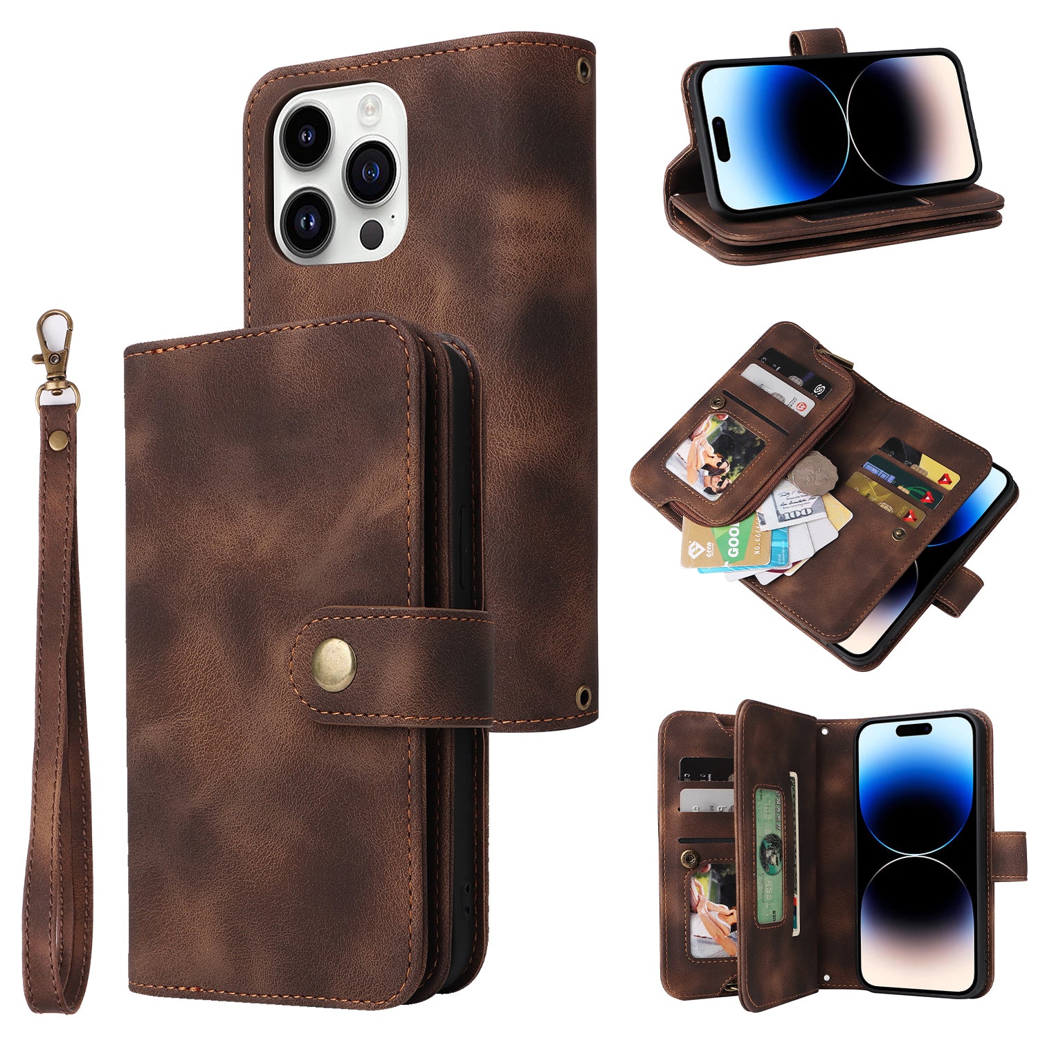 - Kožené pouzdro na telefon iPhone 13 Pro Multifunkční kapesní stojánek na zip Peněženka Kryt na telefon s popruhy Kožené pouzdro na telefon iPhone 13 Pro Multifunkční kapesní stojánek na zip Peněženka Kryt na telefon s popruhy