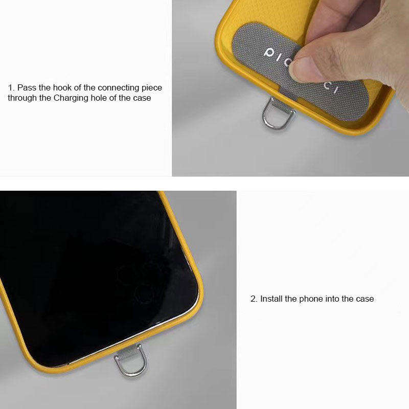 - 1. Pass the hook of the tether tab through the charging hole of the phone case.
