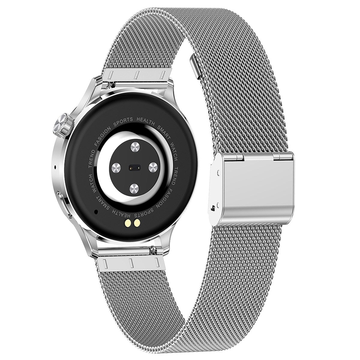 Inteligentní hodinky SB-X1 1,19 palcové, plně kulaté dotykové dámské hodinky Voděodolný sportovní náramek Připomenutí informací o podpoře / volání Bluetooth (s ocelovým/silikonovým řemínkem) – stříbrná