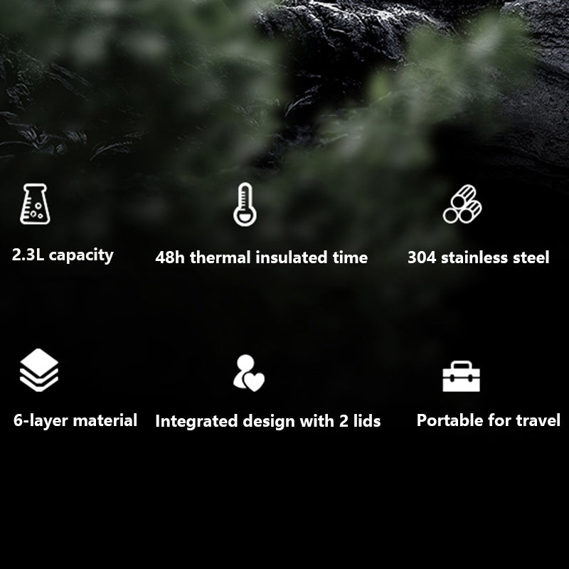 TEAHOO 2.3L 304 Stainless Steel Insulated Cup Outdoor Water Bottle (BPA Free, No FDA)