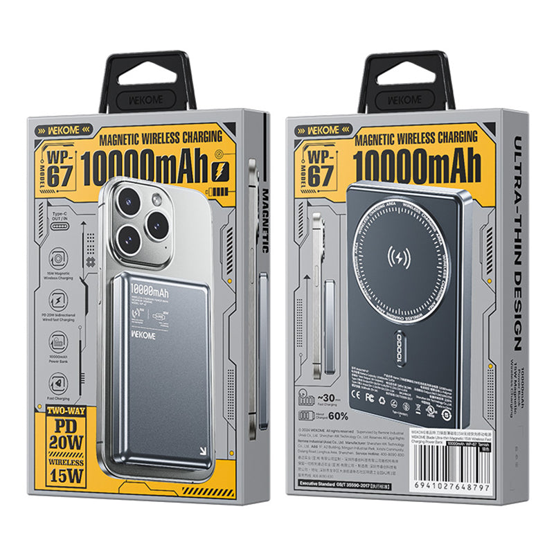 - WEKOME WP-67 10000mAh Power Bank 15W Magnetic Wireless Charger External Battery Pack WEKOME WP-67 10000mAh Power Bank 15W Magnetic Wireless Charger External Battery Pack
