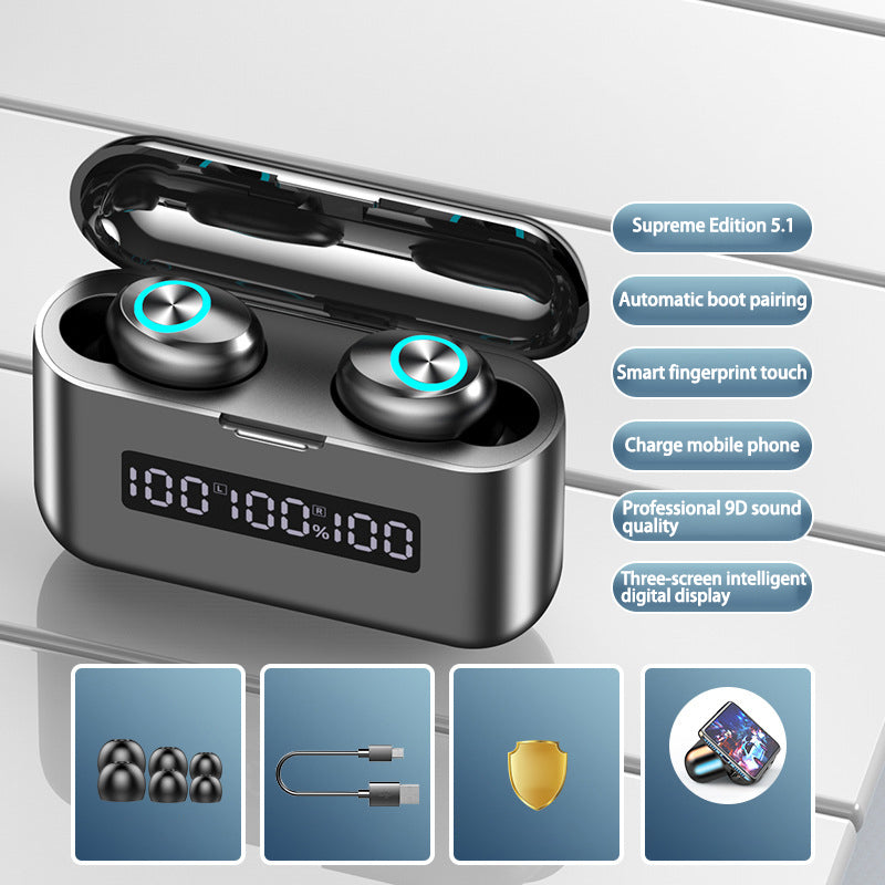 - Left and right earphones and charging case remaining power percentage full real-time digital display, power at a glance