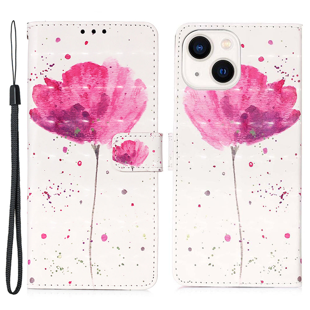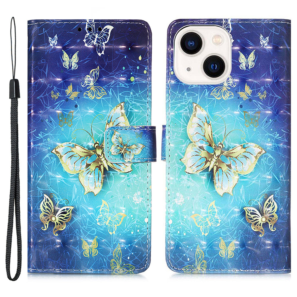 Kožený potisk vzoru YB Series-2 pro iPhone 15 Plus Pouzdro na peněženku s 3D potiskem koženého stojánku