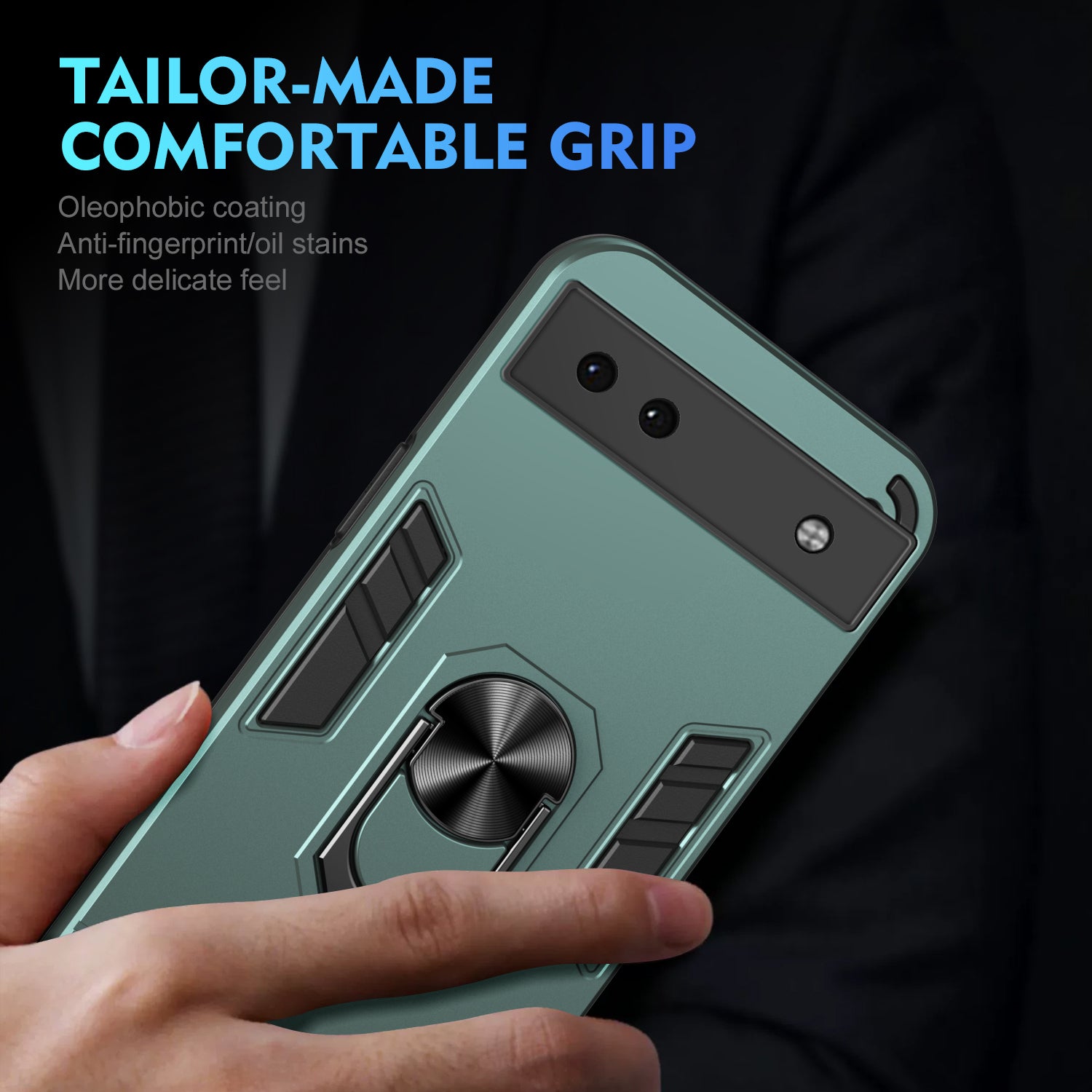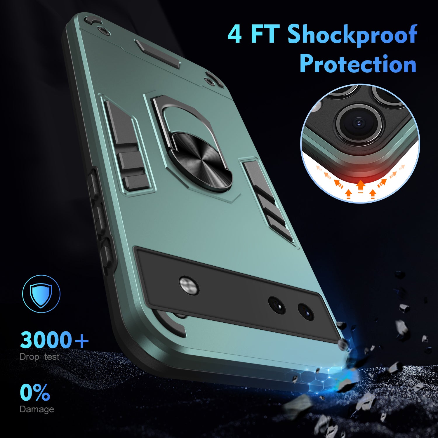 For Google Pixel 6a Case Magnetic Car Mount Phone Cover with Ring Kickstand