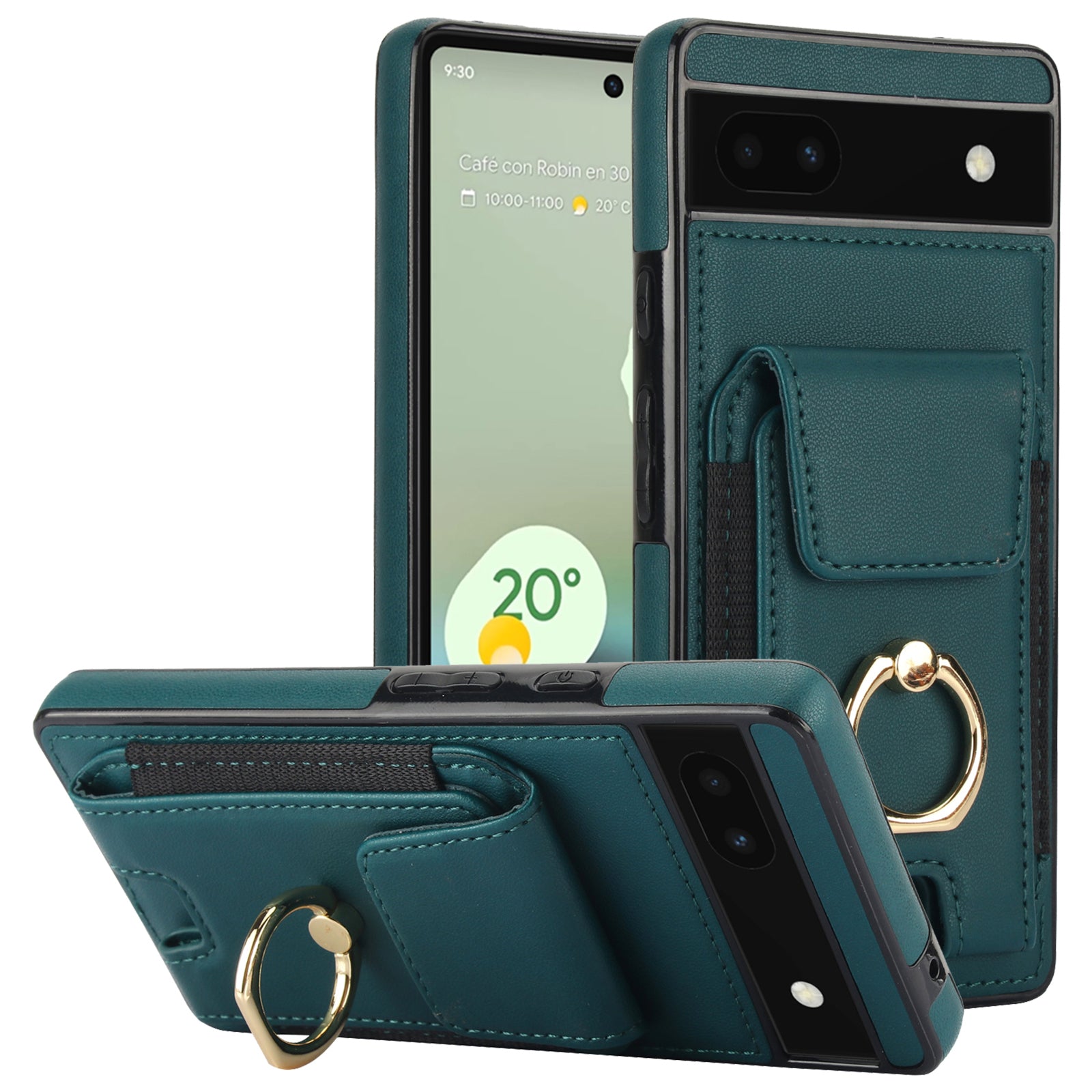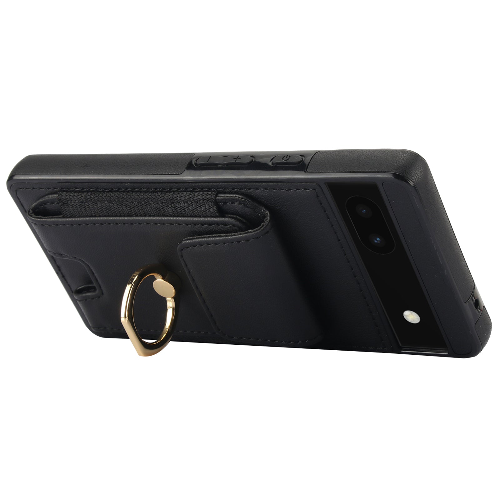 For Google Pixel 6a Phone Case PU Leather+TPU Card Holder Cover with Ring Holder
