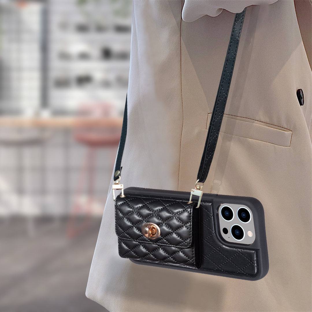 BF21-stil PU læder TPU telefoncover til iPhone 14 Pro Max telefoncover med kortslot og rem