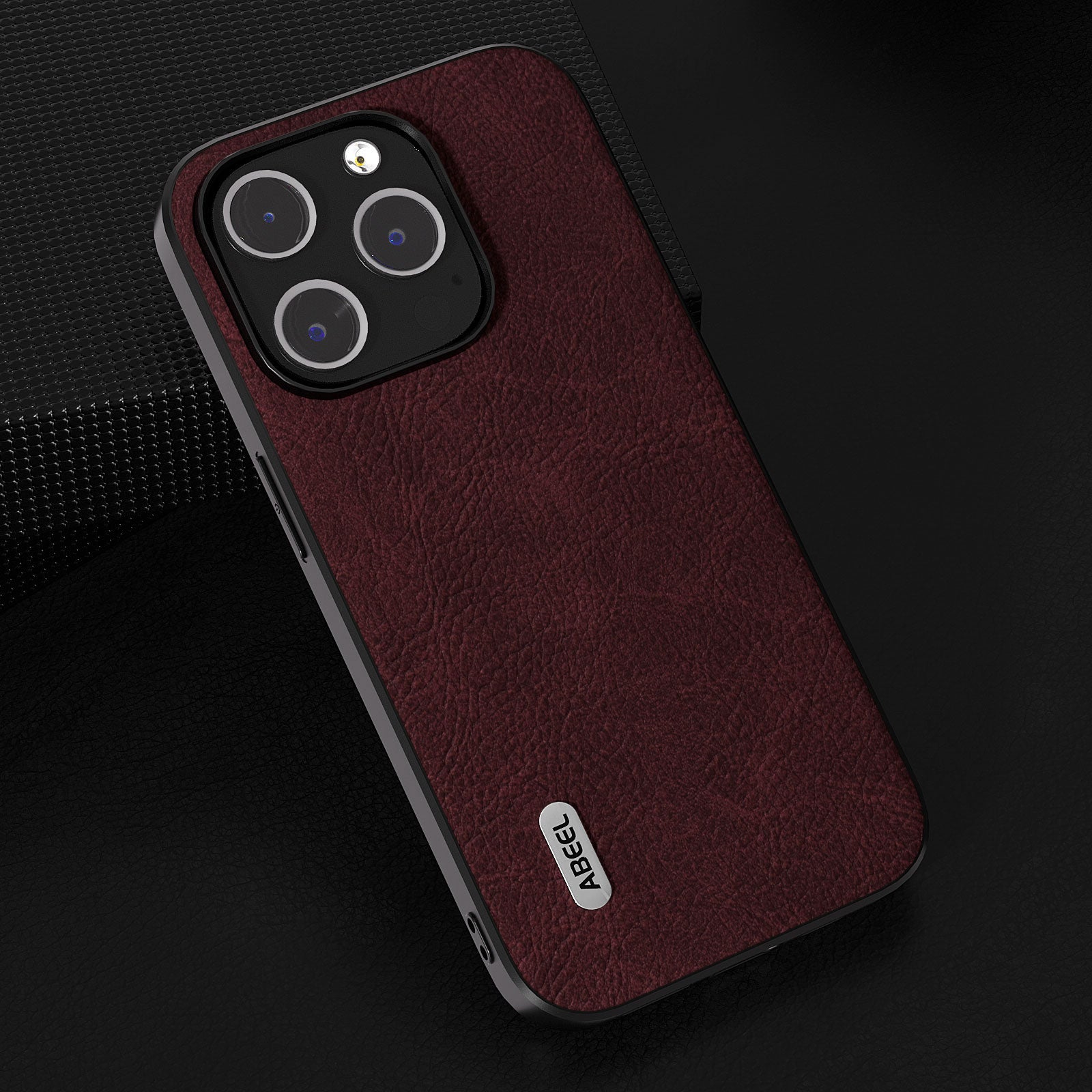 ABEEL til iPhone 15 Pro Max Litchi Texture Anti-ridse telefoncover PU lædercoated PC TPU taske
