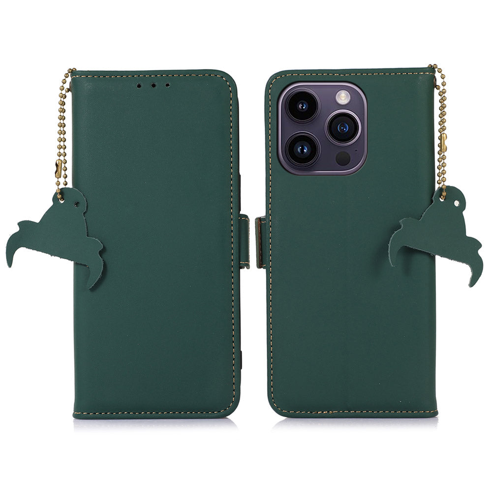 Til iPhone 15 Pro Max RFID-blokerende tegnebog Telefoncover Ægte ko-læder Stand Telefoncover