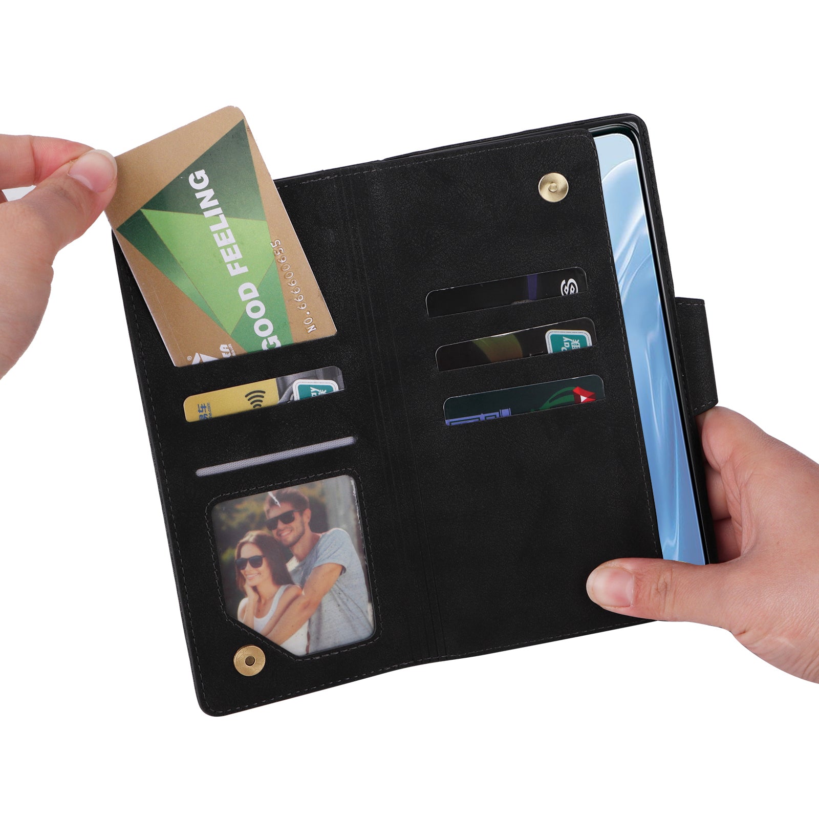 - Wallet design, easy to manage your cards and cash money