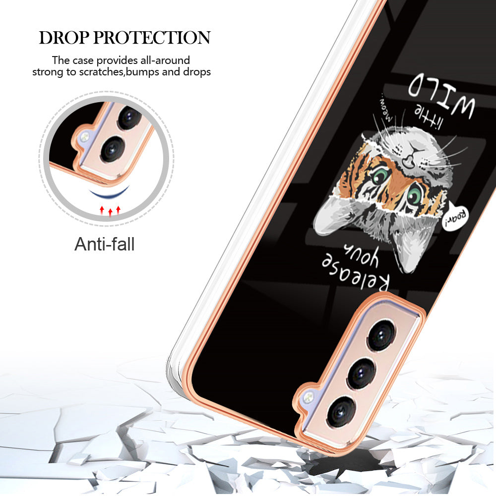 YB IMD Series-19 Style D 2,0 mm TPU-cover til Samsung Galaxy S21 FE 5G IMD-mønster galvanisering anti-drop telefoncover