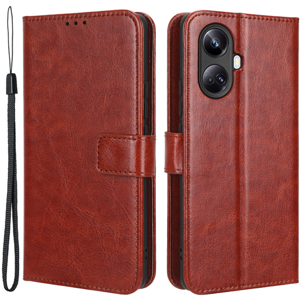 Til Realme 10 Pro 5G Fuld Kropsdækning Crazy Horse Tekstur Magnetisk Mobiltelefon Case Flip Wallet Stand PU Læder Telefoncover med rem