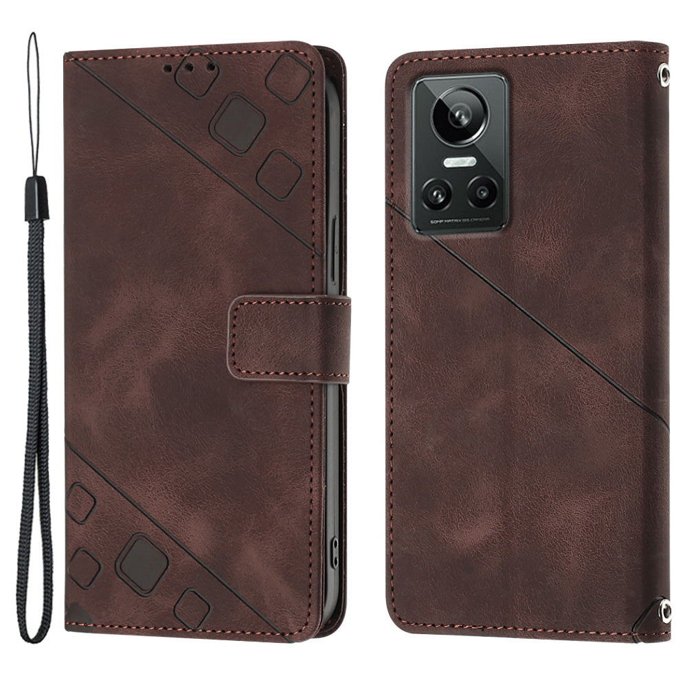 PT005 YB Imprinting Series-6 Leather Phone Case for Realme GT Neo 3 5G Flip Stand Wallet Cover Phone Holder