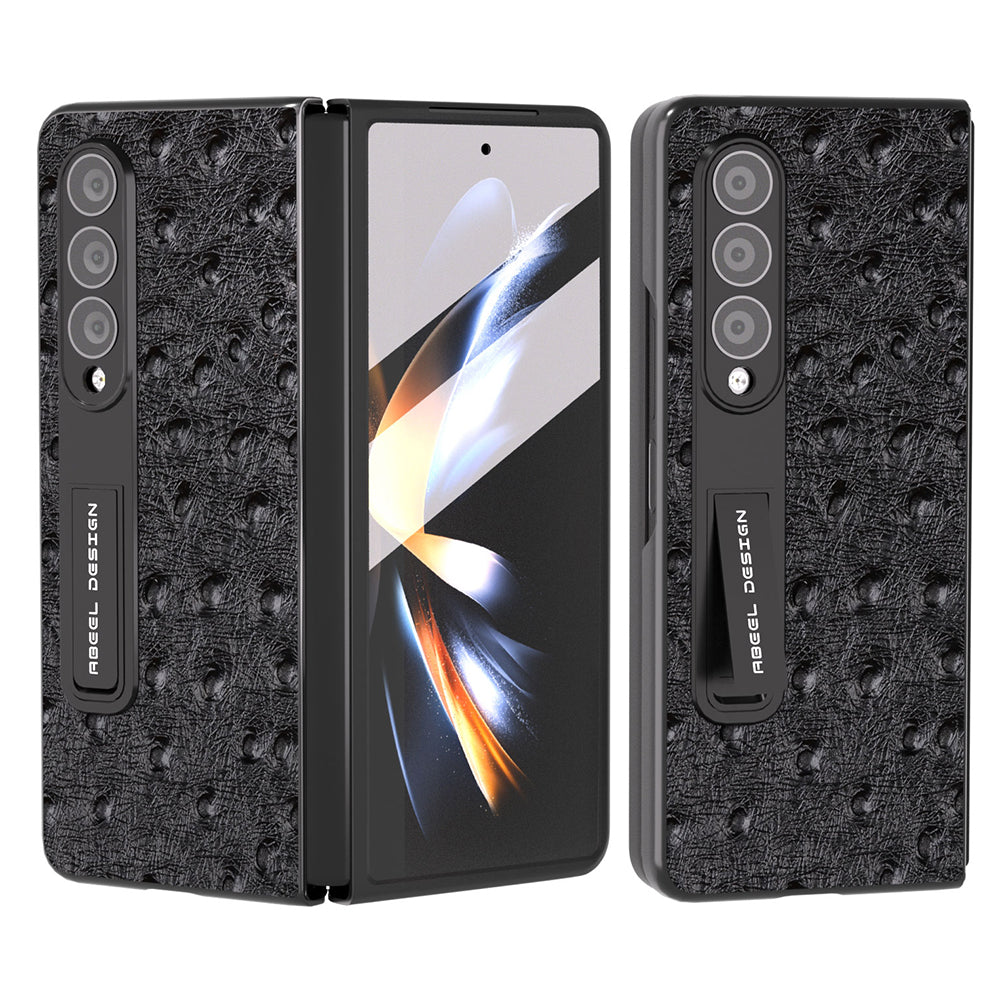 - ABEEL Til Samsung Galaxy Z Fold4 5G Struds Tekstur Kickstand Cover Ægte kolæder PC-telefontaske med frontskærmsfilm ABEEL Til Samsung Galaxy Z Fold4 5G Struds Tekstur Kickstand Cover Ægte kolæder PC-telefontaske med frontskærmsfilm