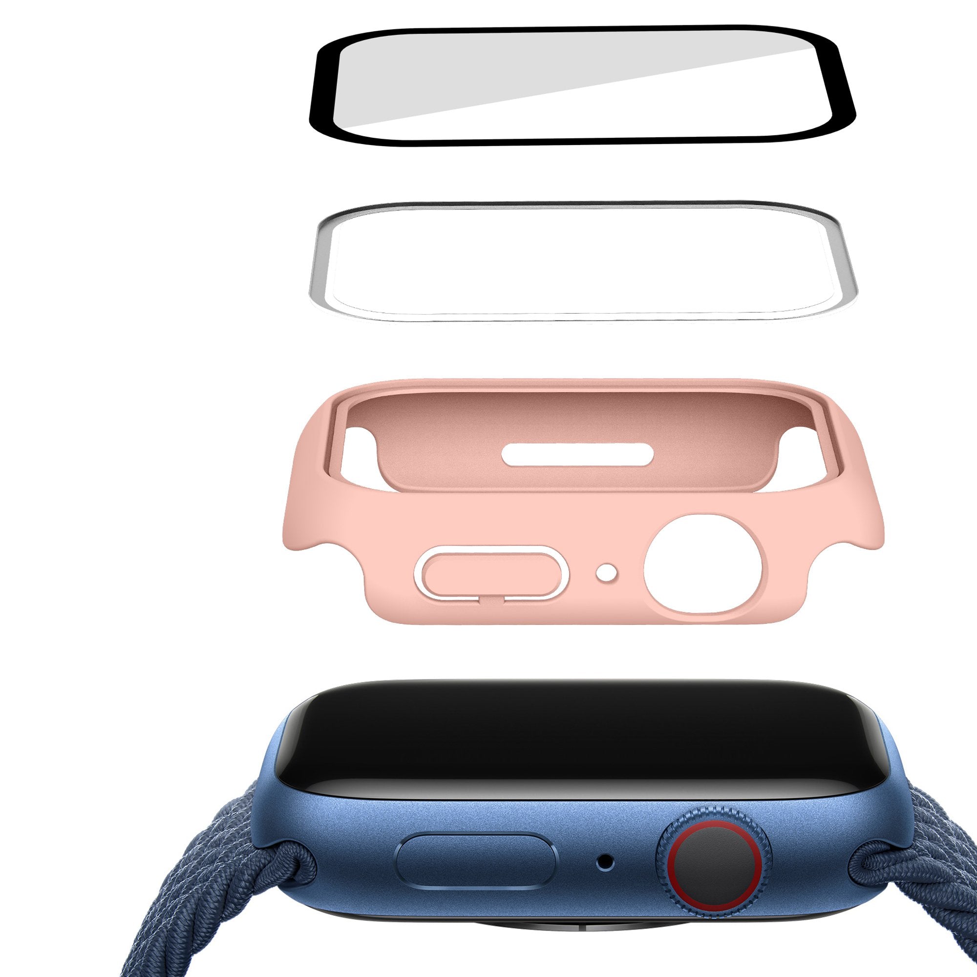 - For Apple Watch Series 7 41mm Rubberized Hard PC Case with Tempered Glass Screen Protector Scratch Resistant Overall Protective Cover For Apple Watch Series 7 41mm Rubberized Hard PC Case with Tempered Glass Screen Protector Scratch Resistant Overall Protective Cover