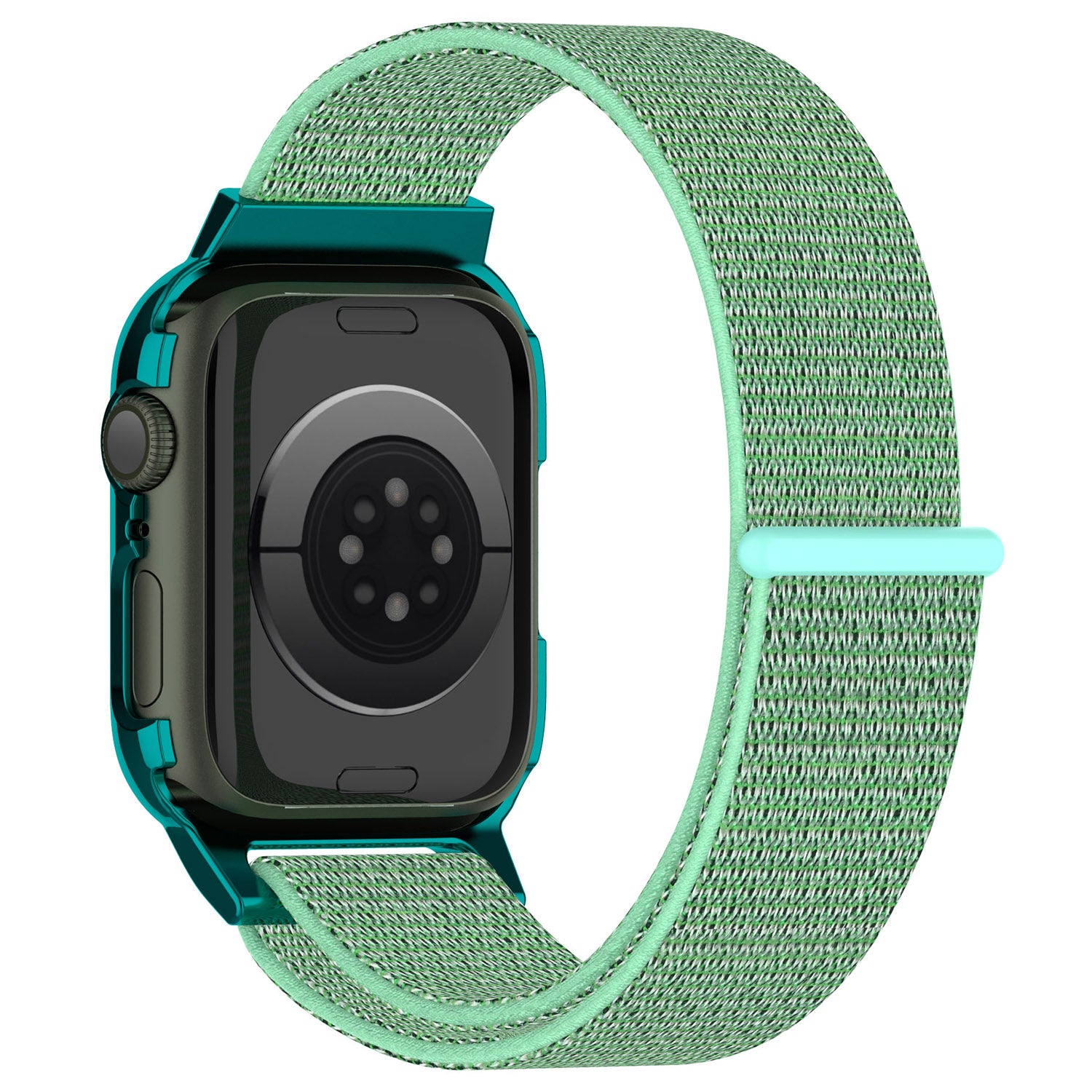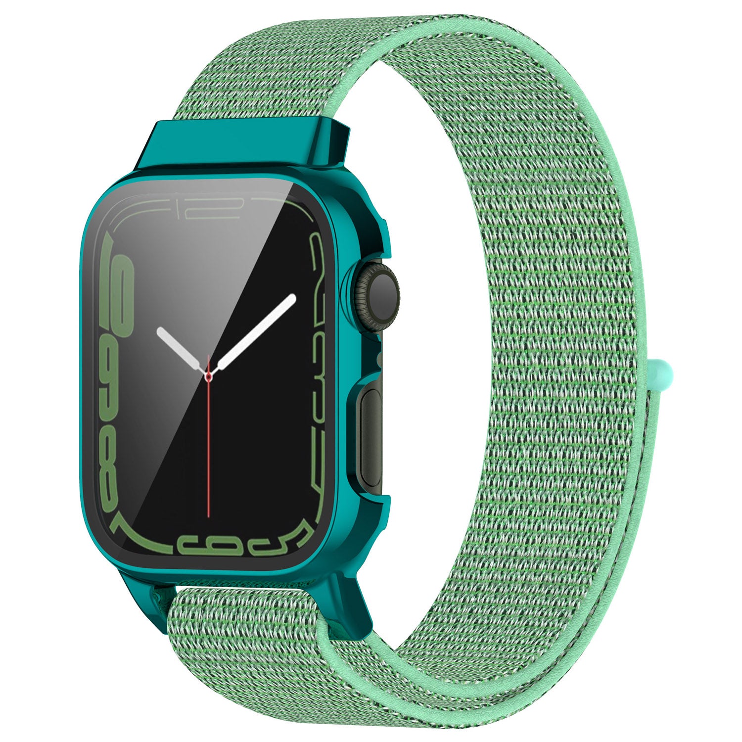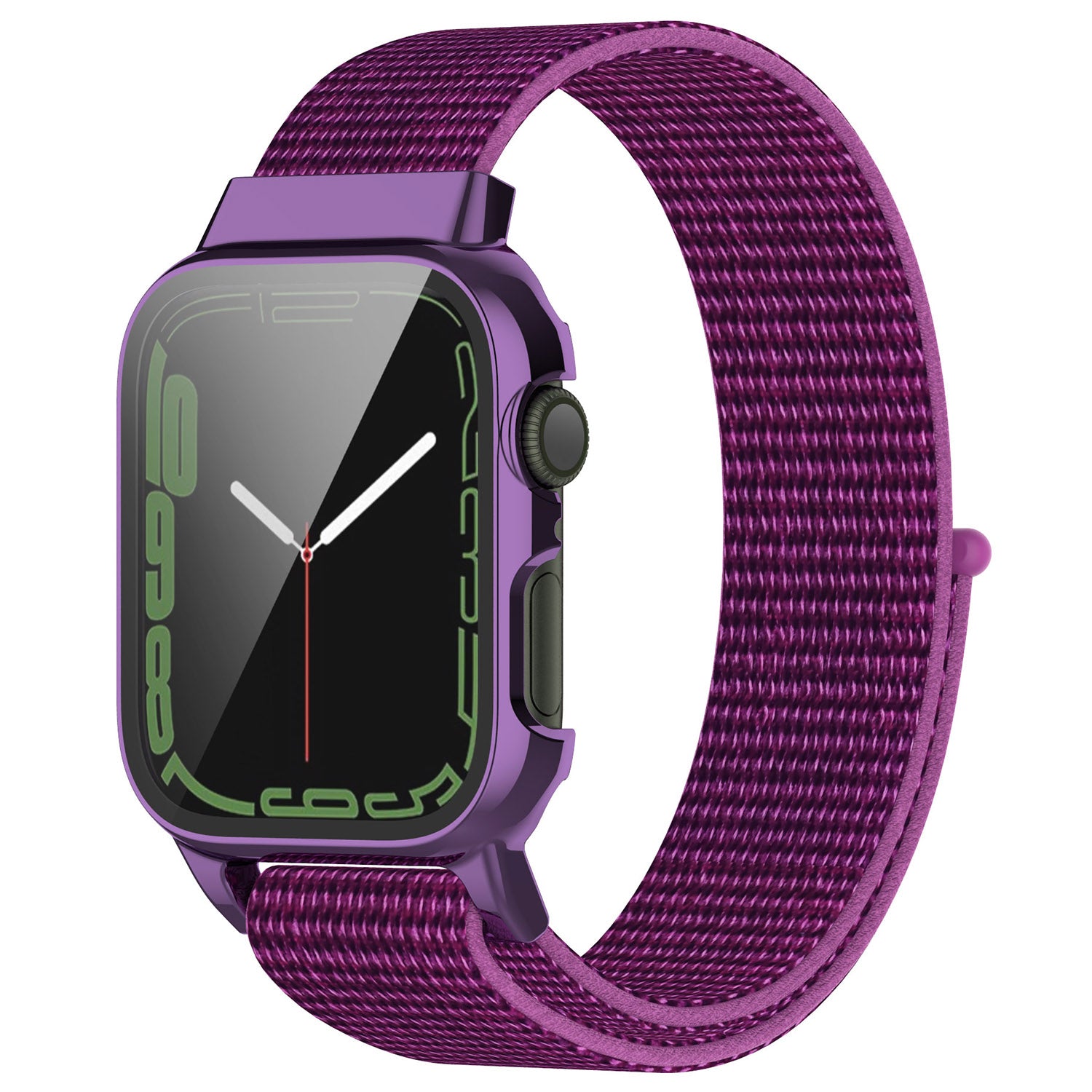 - Loop Fastener Nylon Watch Band Strap + Tempered Glass Film Electroplating PC Watch Case Cover for Apple Watch Series 7 45mm Loop Fastener Nylon Watch Band Strap + Tempered Glass Film Electroplating PC Watch Case Cover for Apple Watch Series 7 45mm