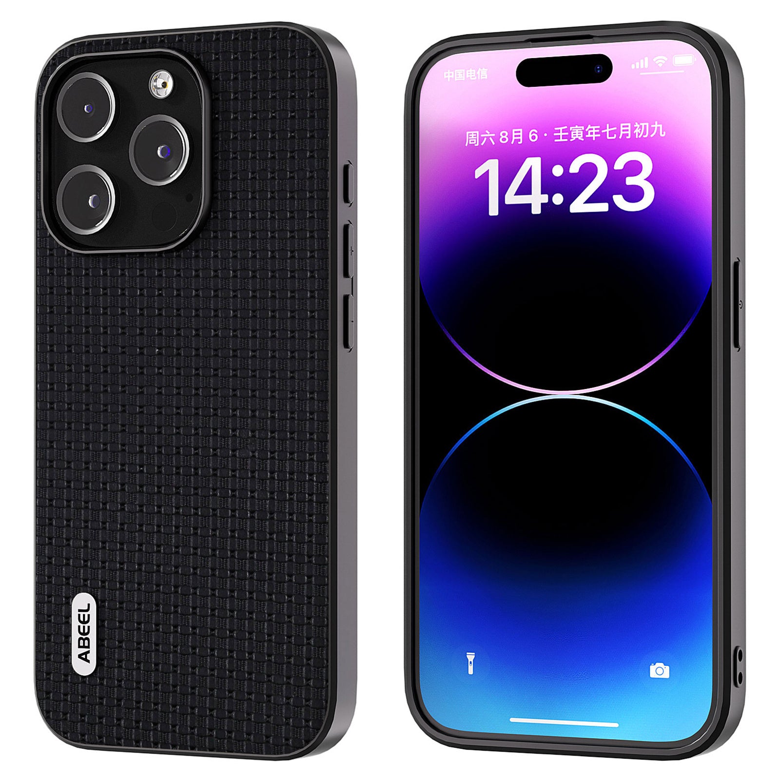 ABEEL Til iPhone 14 Pro Luxury Textured Back Case Cowhide Læder Coated PC TPU telefoncover