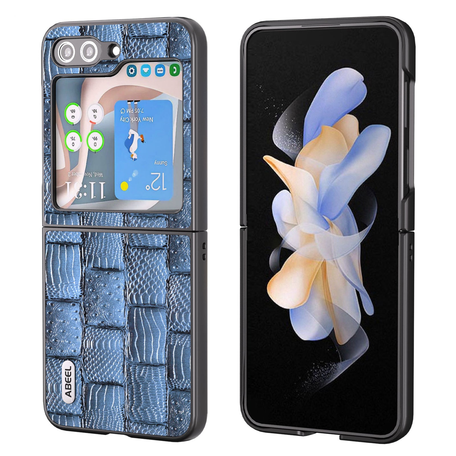 ABEEL til Samsung Galaxy Z Flip5 5G Mahjong Texture telefonetui Ægte ko læder belagt PC stødsikkert cover
