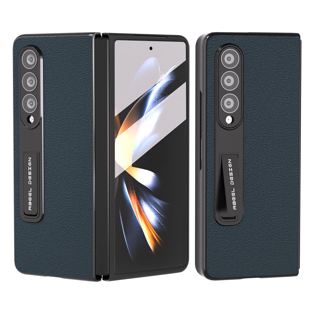 ABEEL til Samsung Galaxy Z Fold3 5G ægte ko-læder PC Anti-Drop-etui Kickstand Foldetelefoncover med skærmfilm