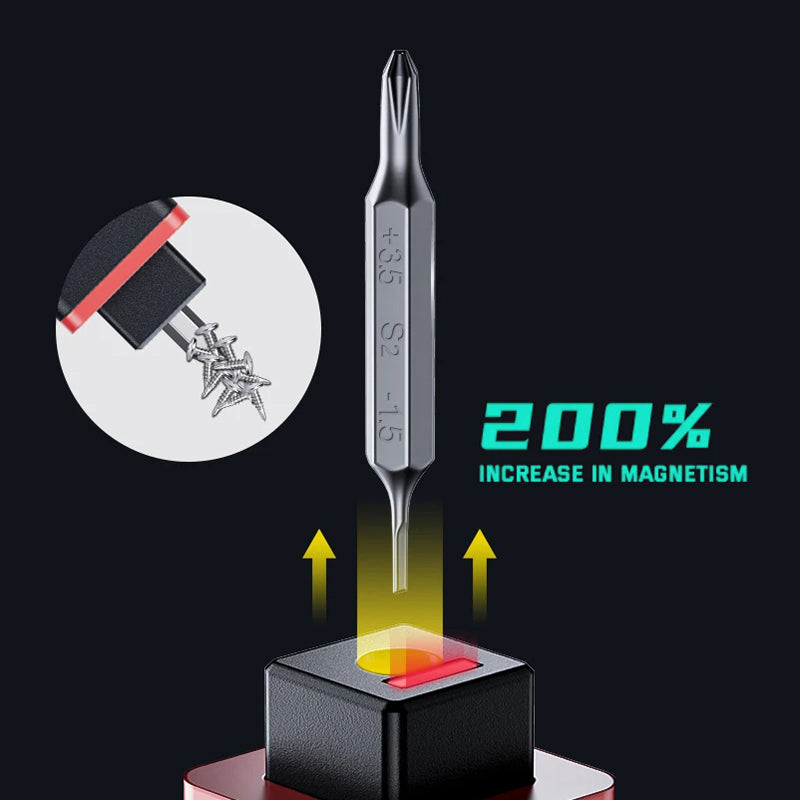 - It has a hidden magnetic storage compartment to prevent bit confusion