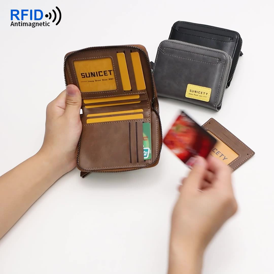 SUNICETY Retro-stil PU-læderkort bæretaske Penge Kontanter Møntopbevaringspose RFID-blokerende tegnebog