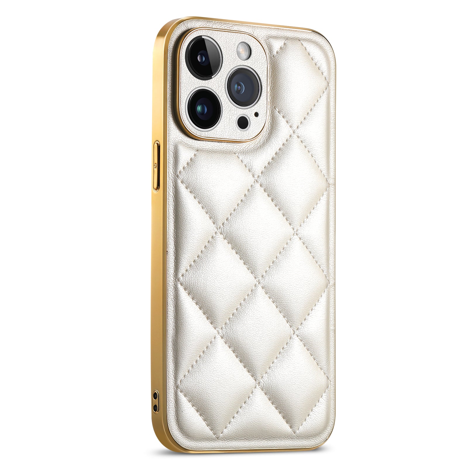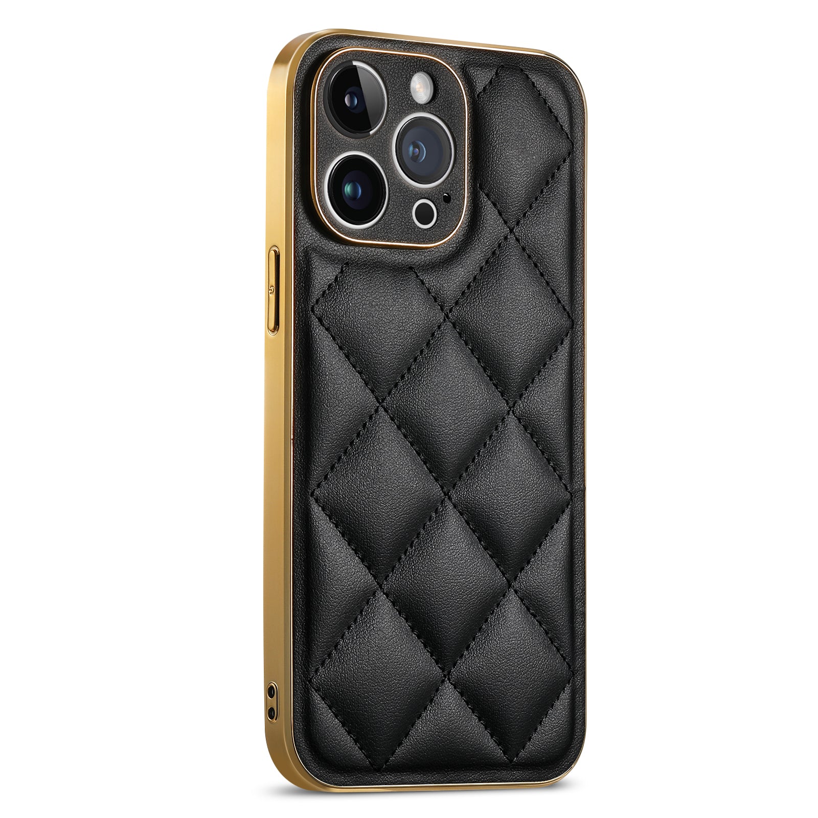 SUTENI Til iPhone 14 Pro Max Large Rhombus Design Elektroplettering Telefonetui PU læderbelagt TPU PC beskyttelsescover
