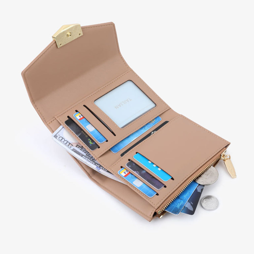 - TAILIAN T6223-034 Short Wallet Soft Leather Trifold Purse with Zipper Coin Pocket - Red TAILIAN T6223-034 Short Wallet Soft Leather Trifold Purse with Zipper Coin Pocket - Red