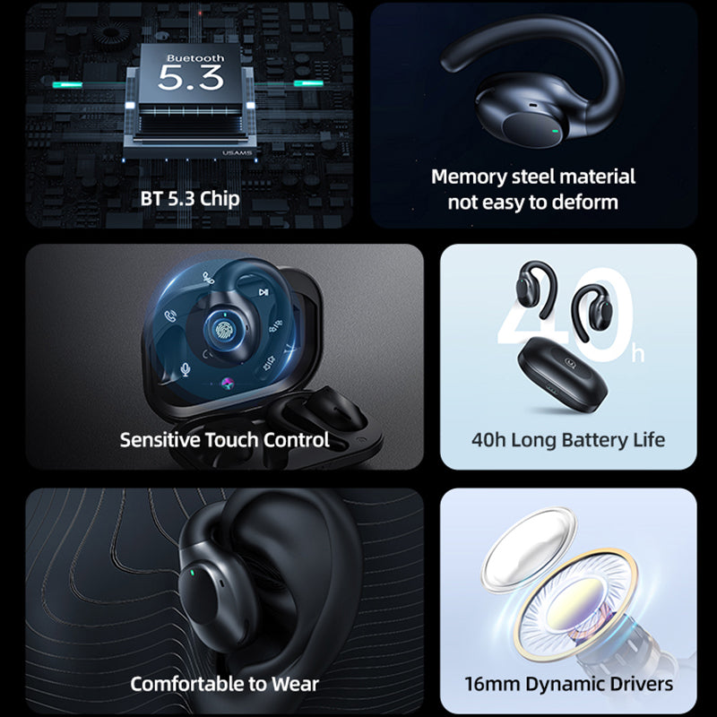 - USAMS EM Series EM20 Bluetooth 5.3 Earhook Sports Headset Stereo Trådløs Musik høretelefon USAMS EM Series EM20 Bluetooth 5.3 Earhook Sports Headset Stereo Trådløs Musik høretelefon