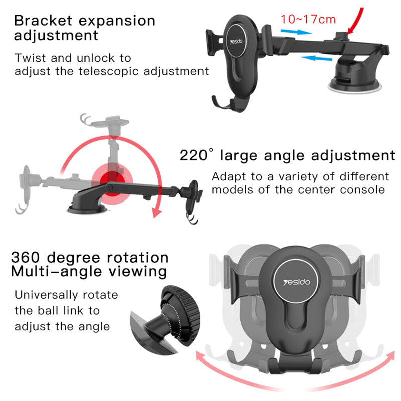 - YESIDO C44 Universal Dashboard Biltelefonholder Bracket Mount til 3,5-6 tommer telefoner YESIDO C44 Universal Dashboard Biltelefonholder Bracket Mount til 3,5-6 tommer telefoner