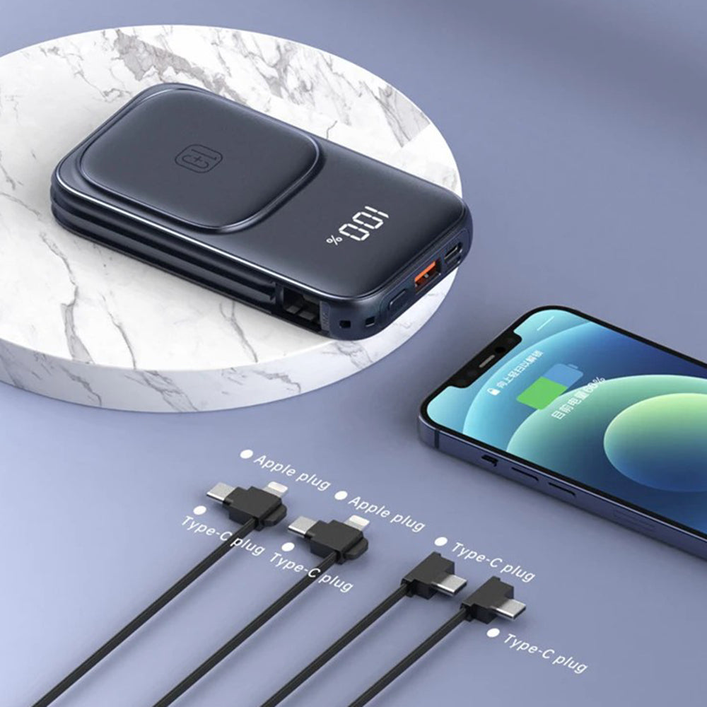 CYKE W1 10000mAh Phone Power Bank Magnetic Wireless Charger with 2 Removable Cables