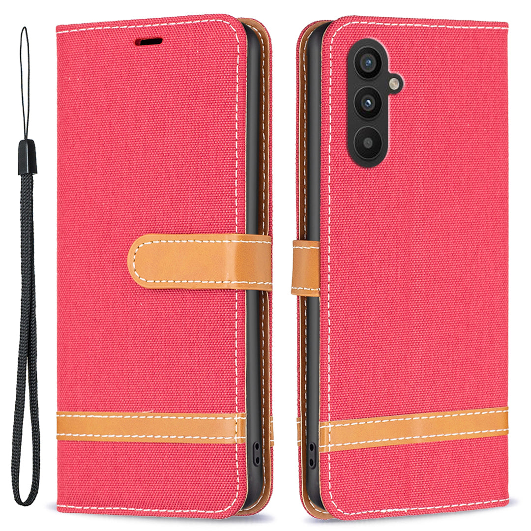 - Til Samsung Galaxy A25 5G telefon læderetui jeans stof splejsning telefoncover med pungholder Til Samsung Galaxy A25 5G telefon læderetui jeans stof splejsning telefoncover med pungholder