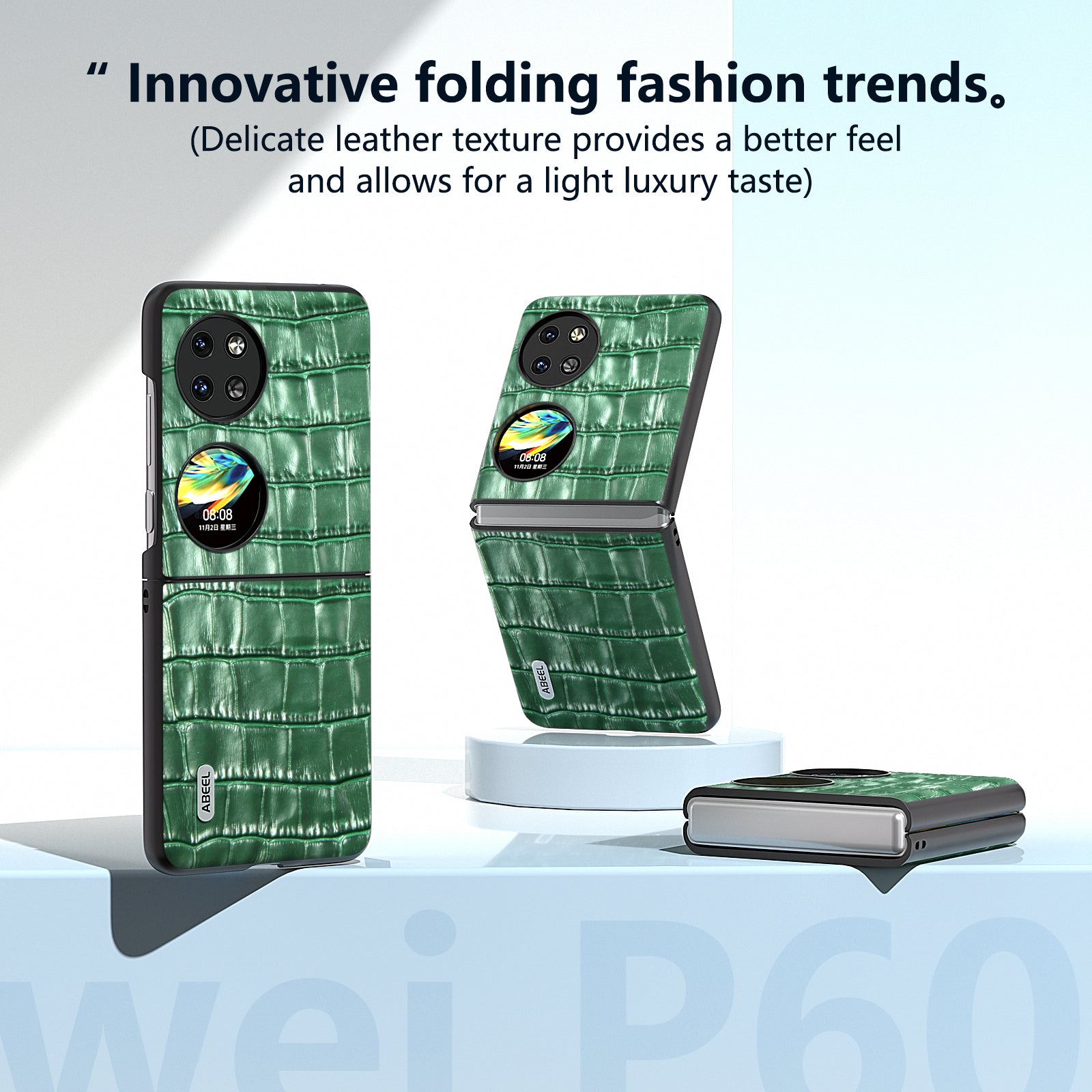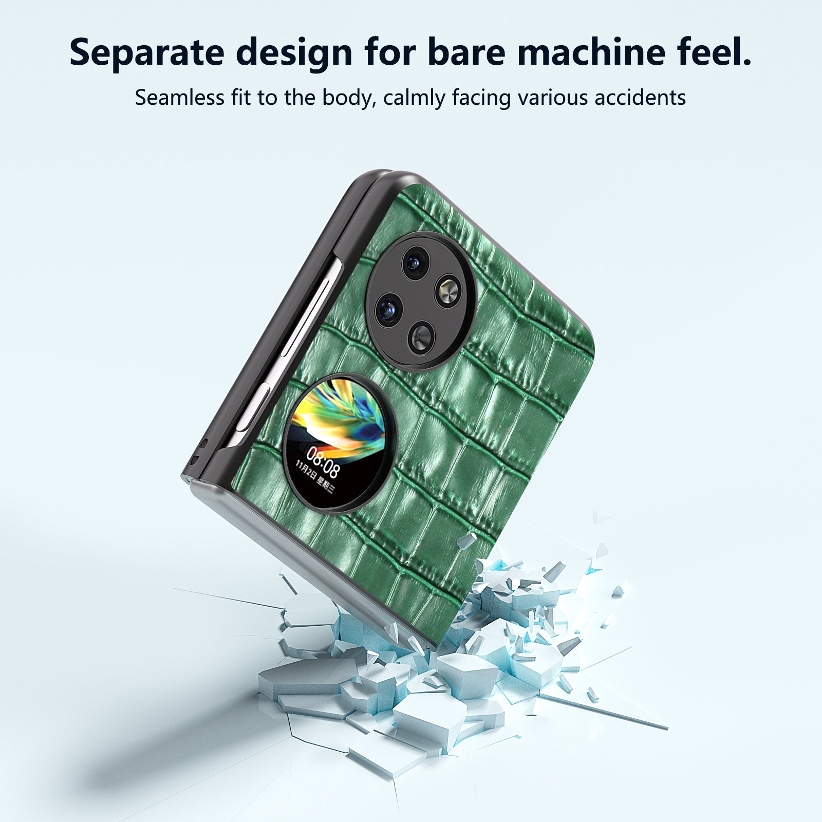 - ABEEL For Huawei Pocket 2 Phone Case Genuine Cow Leather Back Shell Crocodile Texture - Green ABEEL For Huawei Pocket 2 Phone Case Genuine Cow Leather Back Shell Crocodile Texture - Green